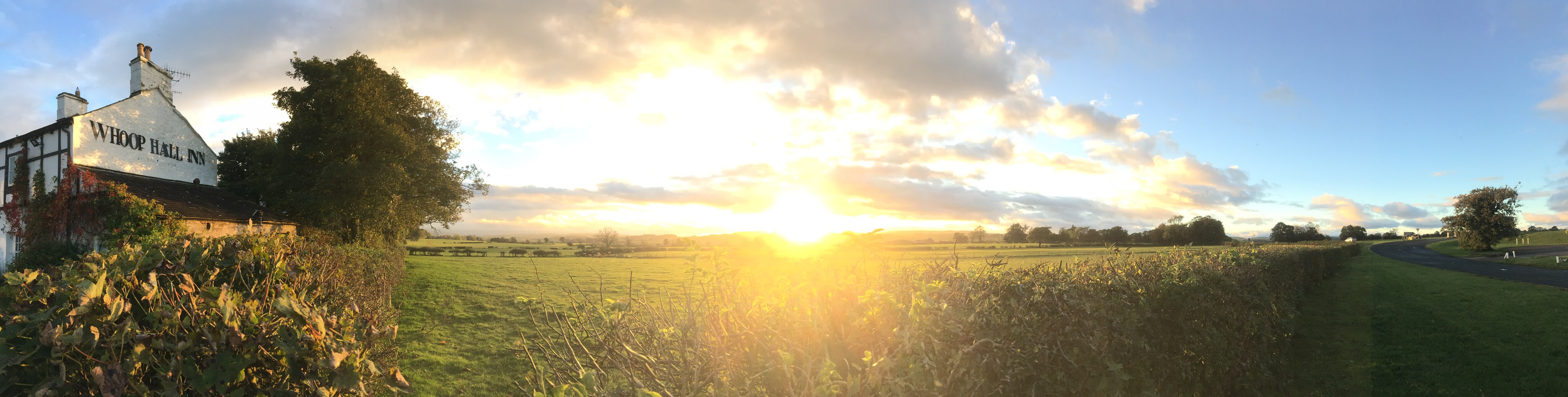 This morning we said goodbye to England. This afternoon we said hello to Scotland. Here’s a panoramic picture of our hotel in the Lake District: the Whoop Hall Inn. It was great being back there. This time included a stroll or two in the area public walking path and a couple of good shots of our second sunset in the area (pictured above).